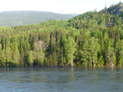 J’arrivais à Prince Rupert dans un épais brouillard et un froid vif. Je m’immergeais dans le Museum of Northern British Columbia pendant une grande partie de la matinée. Il est installé dans une superbe longhouse de rondin de thuya géant rouge. Je montre les objets de la partie concernant les Premières Nations, le reste est le bric-à-brac des colons. Ensuite j’arpentais les quelques rues de la ville et Cow Bay où il n’y avait pas âme qui vive. Après le déjeuner au Charley’s Lounge je fis un arrêt à la Prince Rupert Library pour consulter ma messagerie. En ce début juin l’activité touristique était nulle, je repris la route pour Terrace où j’arrivais peu avant 17 heures pour faire permuter les roues du camion, déjà 10.000 km depuis Houston le 18/04/2011. Je bivouaquais dans le Kitsumkalum Park. |