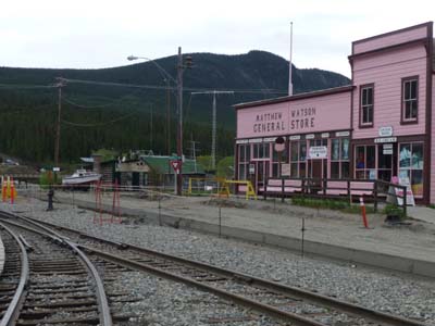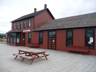 En direction de Skagway sur la Hwy #2 Carcross, peuple Tagish, est le point focal des voies d’eau, des routes et du chemin de fer. Le village est en pleine restauration pour l’ouverture de la saison touristique. Le musée de la gare présente des photos d’époque avec l’histoire de la construction de la voie ferrée et de la ruée vers l’or. Encore une longue journée dans des paysages typiquement du nord canadien par un temps maussade à une altitude variant de 750 à 900 mètres. |