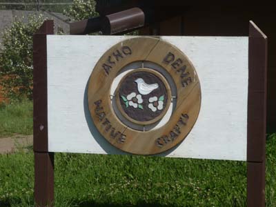 De bon matin j’embarquais sur le premier ferry à 8 heures –at the top of each hour– à environ 20 km de Fort Simpson. A partir du carrefour de Checkpoint la Mackenzie Hwy devient une route de gravier plaisante. Je fis un détour de 55 km retour pour voir la communauté de Jean Marie River -76 habitants- situé à la confluence du Jean Marie avec le Mackenzie River. Elle est réputée pour son artisanat avec des poils d’orignal et par la tenue de l’assemblée de la Deh Cho Première Nation en 2009. |