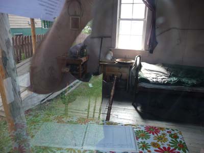 Un peu plus loin toujours au bord du Mackenzie River l’Albert Faille’s cabin occupé par un personnage haut en couleur, prospecteur, trappeur, chasseur, pêcheur et solitaire ; sa renommée tient à une citation dans un roman et à son apparition dans un court métrage. Je photographiais l’intérieur à travers la vitre d’une fenêtre. |
