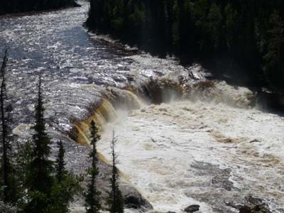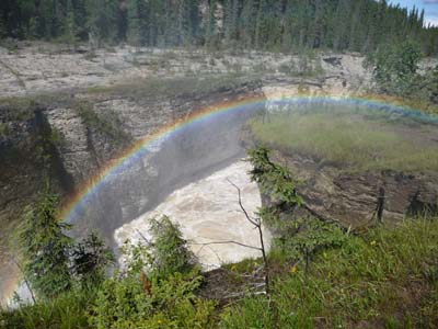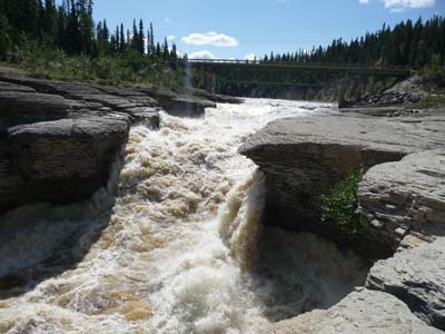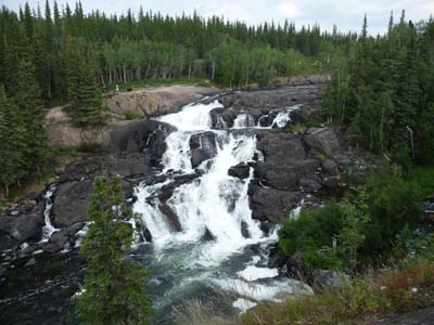 Vers midi j’entrais dans le Sambaa Deh Territorial Park où je déjeunais et décidais de rester la nuit. Ce parc a deux chutes d’eau sur le Trout River, les Coral Falls et les Sambaa Falls. |