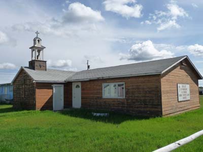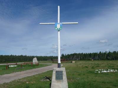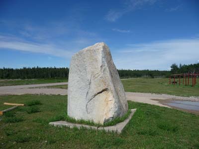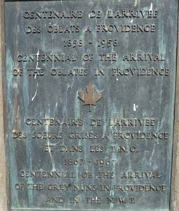 Une dizaine de kilomètres plus loin je bifurquais pour rendre visite à Fort Providence où une église catholique romaine, Notre Dame de la Providence, fut établie en 1861 par les oblats. A l’ouest de la ville au bord de la rivière deux cairns commémoratifs : une Croix avec une plaque pour le centenaire de l’arrivée des oblats et un rocher pour le voyage de Sir Alexander Mackenzie en 1789. |