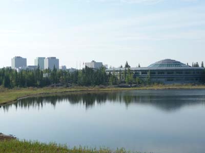 En quittant l’Open Pit où j’avais bivouaqué, je rencontrais un brouillard épais dans la région des lacs, marais. Je constatais avec stupéfaction que les véhicules d’origine nord-américaine qui avaient leur feu de route allumé de jour n’avaient pas les feux arrière allumés, en conséquence ils étaient invisibles de l’arrière dans le brouillard. Soit la loi est mal rédigée, soit les constructeurs sont inconséquents, soit les conducteurs sont inconscients en ne passant pas en feux de nuit. En arrivant à Yellowknife le brouillard avait progressivement disparu. La ville a été décrétée capitale des Northwest Territories en 1967 et devint officiellement une ville en 1970. Au commencement la région avait connue une ruée vers l’or pendant 40 ans, la dernière mine cessa son activité en 2004. En 1991 des diamants furent découverts au nord de la ville. Ainsi après avoir été une ville construite par l’or elle devint la capitale du diamant de l’Amérique du Nord. Le couteau jaune, emblème de Yellowknife, a été adopté il y a quelques années pour symboliser l'importance des mines d'or dans la région. En effet, dans l'industrie minière on se servait de couteaux en cuivre plutôt qu'en acier pour ouvrir les caisses de dynamite sans risquer de faire une étincelle. A l’entrée le Visitor Centre offre toutes les facilités pour le touriste dont une connexion WiFi efficace. La ville est très concentrée avec une population inférieure à 20.000 habitants représentant 50% des Northwest Territories. |