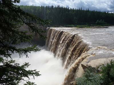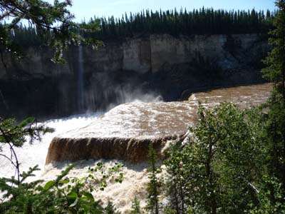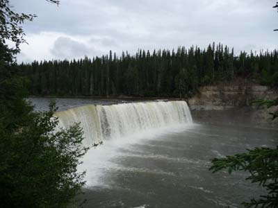 Au carrefour des Hwy #1 & #2 à Enterprise les Twin Falls, Alexandra & Louise, déversent leurs cataractes dans la Hay River que je suivais jusqu’au Great Slave Lake pour bivouaquer à son bord. |