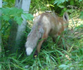 Dans le vieux cimetière je levais un animal que j’identifiais comme un renard roux. Il me regarda fixement et après réflexion il conclut que je n’étais pas un prédateur. Calmement il tourna les talons et me montra son panache, quelle magnifique queue. J’aime flâner dans le jardin de la mort où les dormeurs écoutent le silence et plus spécialement dans ceux où les pionniers qui ont fait l’histoire du nord canadien reposent. |