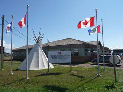 Le site de Fort Resolution fut le premier établissement de la Hudson Bay Company dans la région. Les Oblats s’y installèrent en 1852. Le Traité #8 fut signé par la Couronne avec le peuple Chipewyan en 1900 dont le centième anniversaire fut célébré avec faste en l’an 2000. Le peuple Deninu Ke habite le site à l’embouchure de la Slave Rivière avec le lac éponyme. Alors que je le visitais un responsable de la communauté vint à ma rencontre pour m’offrir deux sets de table, plastification de documents du centenaire du Traité #8. |