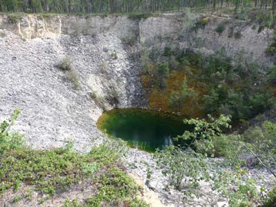 En route vers Fort Smith j’établis mon bivouac à l’Angus Fire Tower à côté d’un gigantesque trou, appelé doline, évidé par l’effondrement d’une caverne creusée par une rivière souterraine. Cette journée fut agréablement ensoleillée. |