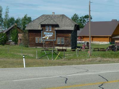 En route à une intersection le hameau Hines Creek expose aux chalands ses antiquités. |