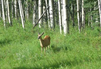 Selon le projet de voyage au Canada je souhaitais visiter la très célèbre Tumbler Ridge et les Kinuseo Falls. Je quittais donc Fort St John pour remonter la Peace Valley chemin faisant je rencontrais de charmants quadrupèdes que je nommais des biches qui n’en sont vraisemblablement pas mais qu’importe. Pour les prendre en photo je m’arrêtais très loin pour ne pas les effrayer, quel joli animal. |