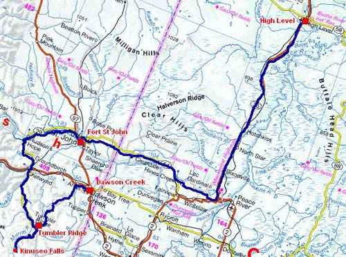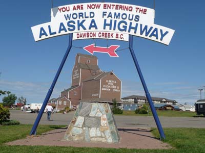 Dawson Creek était une paisible bourgade de pionniers et d’agriculteurs lorsque les japonais bombardèrent Pearl Harbour, Hawaii, peu de temps après les USA et le Canada décidèrent de construire l’emblématique Alcan, Alaska Highway. Plus de 10.000 soldats américains, véhicules militaires, engins de terrassement et travailleurs civils arrivèrent pour construire en huit mois 1491 miles de route de Dawson Creek à Fairbanks. Maintenant l’économie de la cité est basée sur l’industrie pétrolière occupant environ 12.000 personnes. C’est une ville moderne avec un parc d’exposition regroupant la gare de chemin de fer pour le transport des céréales avec un élévateur sur les cinq anciens, le Visitor Centre ainsi qu’une galerie d’art. Je bivouaquais sur place. |