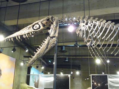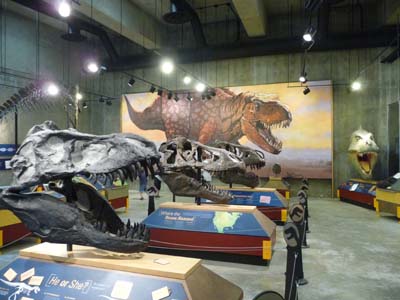 Pour couper au court je pris une autre route de gravier –Davis Creek Road– pour me rendre à Eastend afin de visiter le T-Rex Discovery Centre. Certes encore un musée de dinosaures, mais pas un ne se ressemble tous apportent une pierre à l’édifice de la connaissance des animaux de la période du crétacé. Celui-ci a le squelette de T-Rex le plus complet au monde et un immense prédateur le Tylosaurus. |