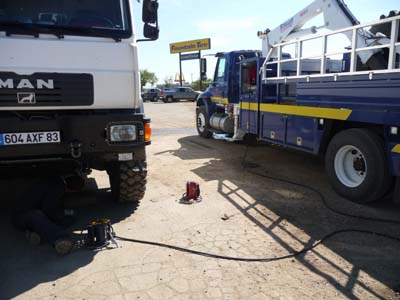 Je consacrais l’après-midi au camion, permutation des roues par le camion d'assistance aux routiers, encore 10.000 km, les distances sont grandes, et à son lavage après les routes de gravier. Je bivouaquais sur le parking du –WDM– |