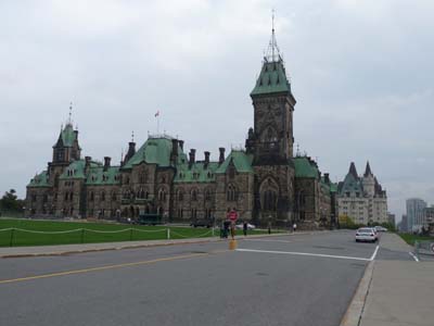 Ottawa est la capitale du Canada avec environ 900.000 habitants. La Reine Victoria choisit elle-même cette localisation, compromis entre Montréal et Toronto. La physionomie de la ville fut créée par l’architecte français Jacques Greber après la deuxième guerre mondiale, je rêve, un français. La ville compte beaucoup de musées dignes d’une capitale, je n’en visitais que deux. Le mardi matin j’étais dans l’expectative du temps de la journée. Le ciel était sombre mais un fort vent chassait les nuages. Je décidais de prendre ma bicyclette. Comme à chaque fois le trajet d’approche du centre ville à partir de la banlieue est problématique. Ici il y a des pistes cyclables mais comment choisir, en route je m’informais auprès des cyclistes rencontrés, j’arrivais sans difficultés. Le centre ville est doté de bâtiments de style résolument Victorien ressemblant à la City de Londres. |