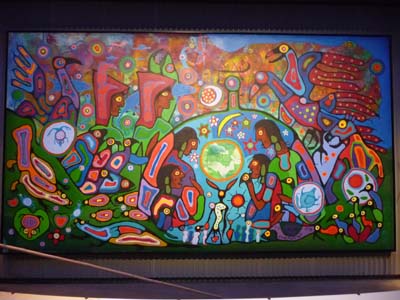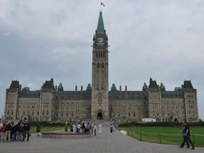 Le temps passa très vite en début d’après-midi je fus au Canadian Museum of Civilization. Un étage complet est consacré aux premières Nations, puis un autre au Canada et une exposition d’œuvres du Japon. Le dernier étage est le bouquet final ; il retrace 1000 ans d’histoire canadienne à travers une série de sites reconstitués grandeur nature, hautement recommandable. Lorsque je quittais le bâtiment, un violent orage se déclencha, je rentrais trempé comme une soupe. Il faudrait passer plusieurs jours à Ottawa. |