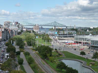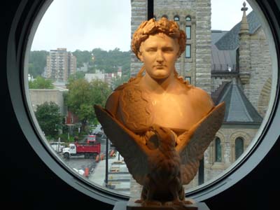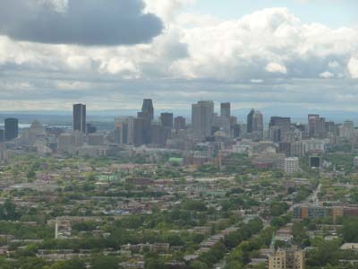 Jacques Cartier remonta le fleuve St Laurent en 1534 jusqu’à Hochelaga qui devint Ville-Marie en 1642 lors de l’expédition de Paul Chomedey de Maisonneuve puis fut renommée Montréal. Elle resta française jusqu’au Traité de Paris en 1763 qui céda le Canada à la Grande Bretagne. Le petit musée du Château de Ramezay conte son histoire. Aujourd’hui elle compte près de 4 millions d’habitants. Elle est la seule ville du Canada réellement bilingue sachant que les rues du centre ville et du vieux port portent des noms résolument français, tous les saints de la chrétienté sont présents. Le premier jour de visite fut pluvieux une grande partie de la journée avec une température d’environ 16°C. Il ne fut pas agréable de visiter la ville dans de telles conditions pataugeant dans l’eau le guide LP sous le bras, le parapluie dans la main gauche et l'appareil photo dans la main droite. Le camping est à 100 mètres de l’arrêt d’un bus qui va à la gare de Vaudreuil pour atteindre Montréal en train à la station Lucien L’Allier, le trajet dure environ une heure et demie. Ma première visite fut le Musée des Beaux-Arts qui recèle des tableaux des différentes écoles européennes, hélas les salles étaient fermées pour réorganisation. Malgré tout il exposait une collection privée donnée au musée d’objets ayant appartenus à Napoléon 1er et au Premier Empire. Je m’immergeais avec plaisir dans cette période glorieuse de l’Histoire de France. |