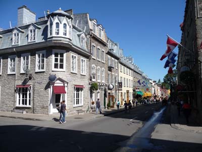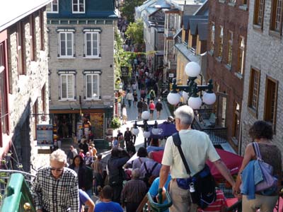 Le site de Québec fut le lieu d’amarrage des vaisseaux de Jacques Cartier lors de son deuxième voyage en 1535. Cette région fut depuis longtemps un habitat Huron. Samuel de Champlain fonda la ville en 1608 et la nomma Kebec. Après diverses incursions les Britanniques entrèrent dans la ville en 1759 après une rude bataille où les généraux Wolfe et Montcalm trouvèrent la mort. En 1763 le traité de Paris donna la Nouvelle France à l’Angleterre. La ville historique inscrite au patrimoine de l’UNESCO est située entre les fortifications et le vieux port où les bâtiments construits en pierre après moult incendies offrent aux touristes une vision idyllique de la vie au 18e siècle alors qu’en ce temps là les bourgeois marchaient dans des rues où s’accumulaient les eaux et les déjections en tout genre. |