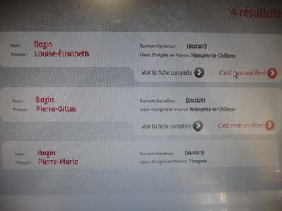 Je visitais un seul musée, le musée de l’Amérique française, situé sur le site historique du Séminaire de Québec, est le premier crée en Amérique du Nord. Il retrace la colonisation de cette partie du monde avec l’arrivée des ecclésiastiques, la fondation du séminaire et de l’hôpital des Augustines. Consultant les archives en ligne je trouvais encore des cousins établis au Québec en ce temps là. |