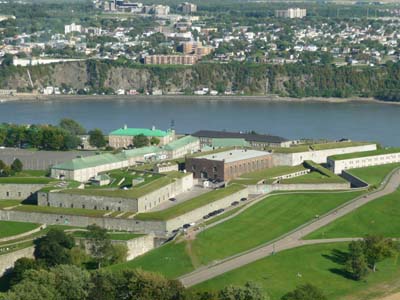 Un panorama du haut de l’Observatoire de la ville permet d’apprécier la position stratégique de la Citadelle et à l’ouest le champs de bataille de 1759. La Citadelle fut conservée et agrandie par les Britanniques, craignant une invasion des Américains qui ne vinrent pas comme le Fort Bastiani du "Désert des Tartares". Ce fut une journée ensoleillée après dissipation des brumes matinales, nombreux furent les touristes à flâner dans les rues de la ville haute. |
