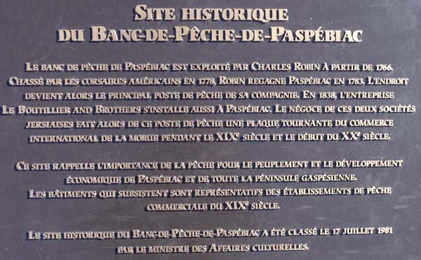 La première visite de la journée fut Paspébiac, site historique pour la pêche à la morue qui fut à l’origine du peuplement de la Gaspésie bien avant l’arrivée de Jacques Cartier. Elle était expédiée séchée et salée en Europe et principalement en Italie et Espagne. |