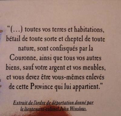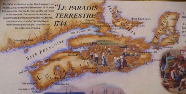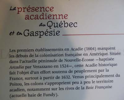 La deuxième visite fut le musée de la ville de Bonaventure consacré aux Acadiens. L’Acadie était composée des Îles maintenant appelées Nouvelle Écosse, Cap-Breton et Prince-Edouard. Le Traité d’Utrecht 1713 donna ces Îles à l’Angleterre qui exigea des ressortissants français de prêter allégeance à la couronne d’Angleterre. Les Acadiens refusèrent, ils furent déportés en 1755. |
