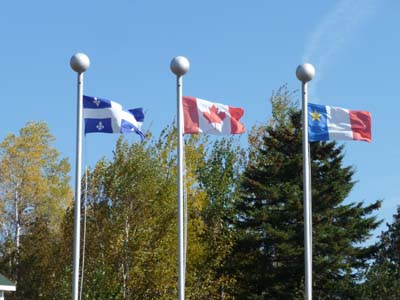 Les drapeaux du Québec, du Canada et de l'Acadie |