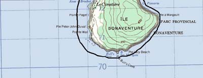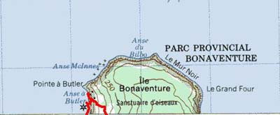 L’Office du Tourisme m’informa qu’il était préférable de visiter l’Île Bonaventure ce jour car la météo du lendemain était mauvaise. |