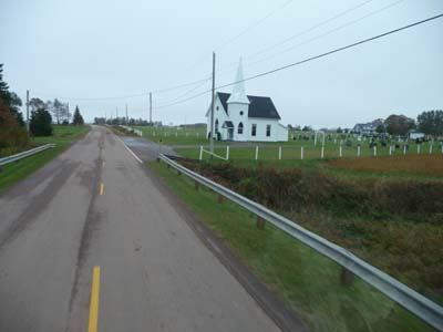 The day before by inspecting my truck I had noticed a nail in the right rear tire which I extracted and marked the position, this morning I checked the pressure of tires, anything abnormal, to follow. The day could have been lovely, the sun rose with a bird of good forecasts flying above. But very quickly weather was put in the rain. Another disappointment at Miscouche where the open-year-round Acadian Museum is, I discovered that it was closed for the season!