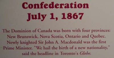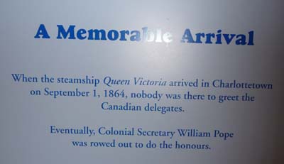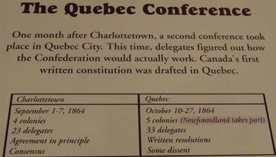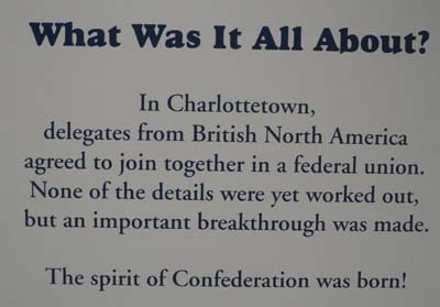 Les distances sont très courtes sur PEI, pour aller à Charlottetown je parcourus 39km ! Elle est la capitale provinciale de l’île avec une population inférieure à 40.000 habitants. Elle entra dans l’histoire du Canada en 1864 lors de la tenue de la première conférence pour la création de la fédération canadienne. Le Hall des Fondateurs du Canada est installé dans une ancienne gare de chemin de fer avec l’Office du Tourisme. La salle d’exposition est un parcours historique commenté en vidéo par une jeune femme avec beaucoup d’humour, … britannique cela va sans dire. Je donne quelques photos de panneaux interprétatifs pour situer le débat qui fut souvent houleux. Après 1867 le Canada s’étendit vers l’ouest pour occuper les territoires attirant la convoitise des USA après leur achat de l’Alaska aux Russes. Finalement grâce à la construction du Canadian Pacific Railway, la Colombie Britannique rejoignit la fédération en 1871. Le Canada actuel ne sera achevé qu’après le rattachement du Newfoundland en 1949 et la création du Nunavut en 1999. |