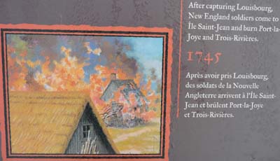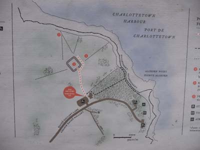 En face du port de Charlottetown les Français construisirent sur Rocky Point le Fort-la-Joye pour contrôler l’accès du port. En ce 19 octobre le Centre des Visiteurs était fermé depuis fin août. Du Fort il ne reste qu’un tas de terre herbeux dûment entretenu. La piste qui le longe est aménagée de panneaux d’interprétation avec des reproductions d’époque et des commentaires très éloquents. Les quelques photos ci-dessous se passent de redites superflues. La matinée sans être ensoleillée fut agréable avec une lumière quasi hivernale. L’après-midi je flânais sur les petites routes le long de la côte pour aller à Borden-Carleton au pied du Pont de la Confédération. Je passais du temps à l’Office du Tourisme pour lire ma messagerie et la presse française. |