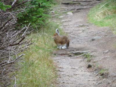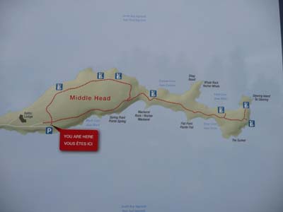 Sur la côte est de l’Île du Cap Breton je parcourais une deuxième randonnée, Middle Head près de Keltic Lodge, Igonish. Le paysage est très différent. Là aussi je fis un face-à-face avec un lapin mais trop loin pour être net. De plus sur les rochers au loin des oiseaux de mer nidifiaient eu égard aux fientes blanches. Les traces GPS sont données sur une carte aux 2 millionièmes agrandie 8 fois ! En effet le New Brunswick, le Nova Scotia et Prince Edward Island ne figurent pas en carte aux 250.000 millièmes, il en est de même des territoires du nord du Canada. Je bivouaquais dans un camping à Big Bras D'Or. |