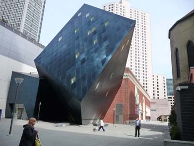 Je trouvais le San Francisco Modern Art Museum portes fermées le mercredi ! A côté le Contemporary Jewish Museum est hébergé dans un ancien bâtiment restauré avec une extension bleue, l’ensemble signifiant en hébreu "I’chaim" (vivre). |