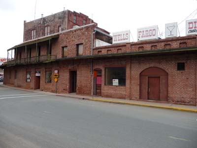 Je me levais avec le soleil inondant mon habitat. Je sortis de dessous la couette pour jeter un oeil dehors, c’était le grand beau temps à +300 mètres d’altitude, mais le toit du camion était couvert de givre. Hélas je devais partir ! Mon premier arrêt fut le Columbia State Historic Park sur la mythique Hwy 49 qui vit défiler des miles de charrettes en tout genre lors du Gold Rush en mars 1850, la population passa à 5.000 habitants en un mois. Hors saison le parc ne reçoit pas beaucoup de visiteur à 11 heures j’étais le seul. Les animations commencent seulement au mois de mai. Toutefois le personnel des boutiques était en costume d’époque. Je parcourais les rues désertes par un vent glaciale à +600 mètres d’altitude. J’imaginais la vie des mineurs en hiver. |