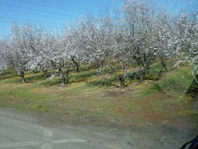 La vallée entre la Hwy 99 et la Hwy 5 était déjà couverte d’arbres fruitiers en fleurs. Quoique la température fût encore négative à Modesto la journée fut ensoleillée avec une température moyenne de +18°C. Pour des raisons de publication hebdomadaire de mon site Internet je bivouaquais à Santa Nella. |