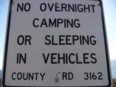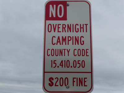 Tout au long de la côte de l’Océan Pacifique des panneaux rappelaient qu’il était interdit de bivouaquer, sorte de rackette pour obliger à aller dans les campings soit privés, hors de prix soit publics des State Parks, ces derniers sans prestations avec des prix entre $25 et $40 la nuit ! La Californie n’est pas le paradis du camping-cariste. Le gouverneur A. Schwarzenegger a laissé l’état le plus riche des USA avec un déficit abyssal, les muscles ne sont pas un gage de compétence managériale. |