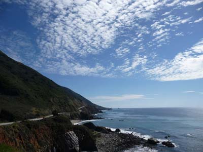 Après le dispendieux camping dans le Pfeiffer SP je trouvais un bivouac sur une petite route surplombant la Hwy 1 avec une vue imprenable sur l’océan. |