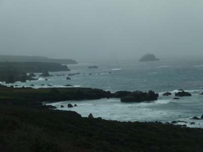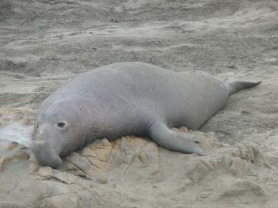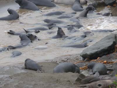 Après une nuit dans la tourmente le lendemain fut glauque avec un brouillard permanent assorti d’un crachin océanique. Rien de très favorable pour les visites je sautais Hearst Castle visité en 1991. Par contre j’admirais d’étranges créatures, Elephant Seal, en colonie bruyante. |