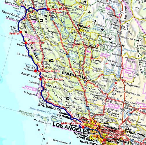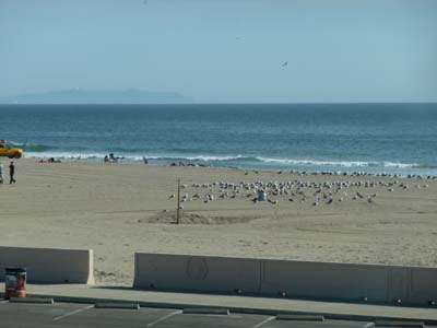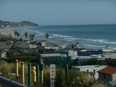 La nuit fut bruyante causée les quads des américains venus en nombre après le turbin pour se défouler dans les dunes plein phare. Le charivari se termina vers 1 heure du matin. Au petit matin la plage était calme lors de mon départ pour Los Angeles. La Hwy 1 et la Hwy 101 n’offraient aucun intérêt. Las je m’arrêtais à Malibu au seul camping de l’endroit, cher et pas folichon. La plage, rendue célèbre par une série TV, était quasi déserte en ce samedi. |