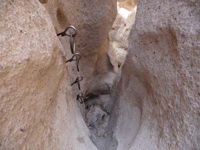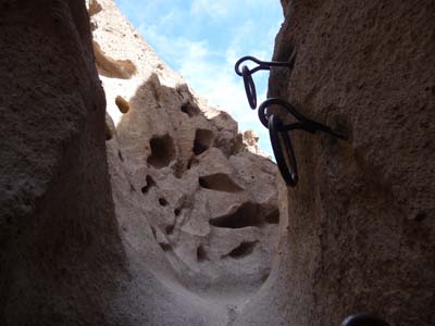 Au centre du Mojave NP le Visitor Center se trouve au lieu dit, Hole-In-The-Wall. Je m’arrêtais pour la moisson habituelle et pour déjeuner avant de faire la randonnée de Barber Peak Loop Trail de plus de 10km en deux heures et 10 minutes. Au commencement était la descente aux enfers à l’aide de crochets scellés dans la roche. Tout au long du parcours la couleur et la forme des collines variaient selon la composition chimique de la roche donnant des paysages sublimes sous le soleil. |