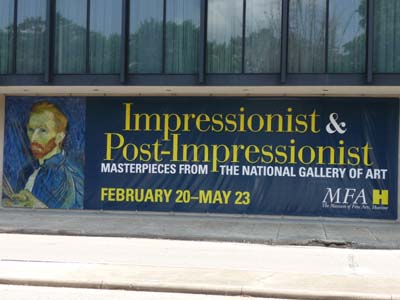 Le mercredi 20 avril je décidais d’acheter une paire de chaussure de randonnée. Ce fut une véritable expédition au sud de Houston pour trouver le spécialiste des équipements de sport. Le trajet retour fut de +100km. Ensuite pour me récompenser de cet exploit je me gratifias en visitant le Museum of Fine Arts Houston –MFAH– qui au bonheur avait une exposition spéciale des Impressionnistes français, no picture. L’affiche présente l’autoportrait de Vincent Van Gogh. Dans le Cullen Sculpture Garden les sculpteurs Bourdelle, Maillol et Rodin étaient exposés. L’agglomération de Houston est peuplée d’environ 6 millions d’habitants qui circulent sur un enchevêtrement d’autoroutes heureusement équipées d’une bonne signalisation. |