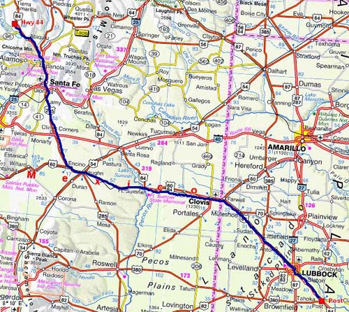 Le lendemain je quittais les alpages à 2500 m d’altitude pour descendre progressivement vers Houston. Vers 1500m de verts pâturages apparurent puis à l’est de l’État du New Mexico et à l’ouest du Texas les champs fraîchement cultivés se manifestèrent. En effet la température avait franchement augmenté. Enfin vers Post les balanciers des pompes à pétrole occupaient le paysage. Sinon il n’y a rien à voir et les routes rectilignes sont interminables. Je bivouaquais sur une aire de pique-nique. |