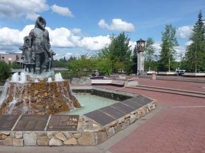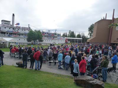 Le lundi 4 juillet est la fête de l’Indépendance des Etats-Unis d’Amérique dont les festivités se déroulèrent dans le Pioneer Park notamment à partir des galeries du S.S. Nenana, bateau à vapeur qui navigua sur le Yukon River. Je me rendis d’abord au Cultural & Visitors Center pour l’habituelle collecte de brochures et le parcours du hall d’exposition : The People and the Land. |