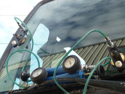 Le lendemain dès 8:00 j’étais chez Pioneer Glass pour réparer les deux impacts de graviers sur le pare-brise. Ensuite je lavais le camion de la boue de la Dalton Hwy, l’opération dura plus d’une heure et demie. |