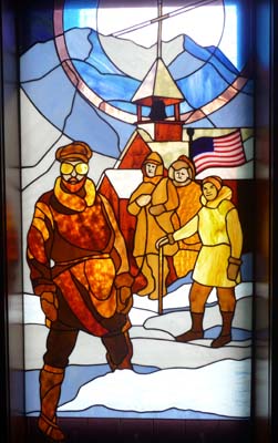 Je profitais de cette journée ensoleillée pour flâner dans le centre ville, très petit, le long de la Chena River où je découvris les remarquables vitraux de la St Matthew’s Episcopal Church. Je passais un long moment au Fairbanks Community Museum qui montre d’intéressantes photos de l’époque de la ruée vers l’or, Fairbanks était sur la route des chercheurs d’or de Valdez à Dawson City, accès à la Klondike Area. Ce fut une journée riche de l’histoire récente de l’Alaska. Je bivouaquais au Riverview RV à Badger. |