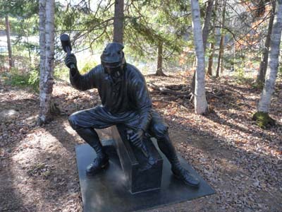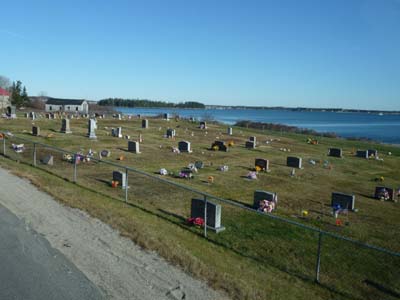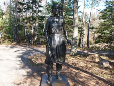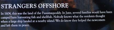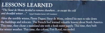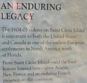 La journée fut ensoleillée mais un vent violent venu de l’Arctique balaya la région avec une température d’environ 5°C pendant la journée. De ce côté de la rivière Sainte Croix le campement des premiers français sur l’île éponyme est aussi à l’honneur pour l’expérience durement acquise. |