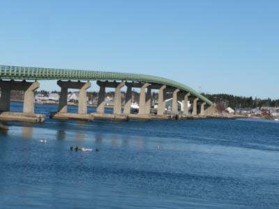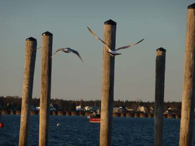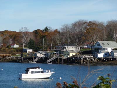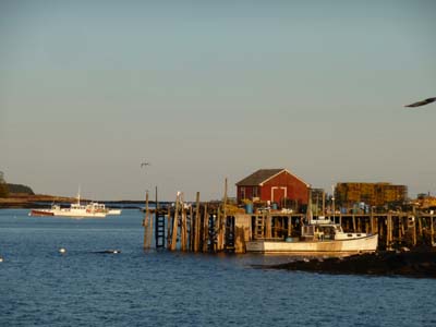 En route sur la Hwy #1 je franchis le 45e parallèle vers le sud, c’était de bon augure pour l’amélioration de la température. Pour le bivouac j’avais décidé d’aller au village de pêcheurs de Beals, certes désert en cette saison mais le soleil couchant éclaira joliment tant le paysage que le port. |