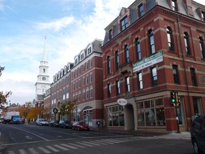 Du Walmart au Visitor Centre il y a un jet de pierre. Je découvris avec joie qu’il était ouvert mais elle fut de courte durée lorsque l’hôtesse m’informa que toutes les attractions étaient fermées y compris le Strawberry Banke Museum. Elle m’indiqua un parking dans le Prescott Park au bord de la Piscataqua River où un employé municipal m’aida à parquer le camion. La ville est la troisième plus ancienne du New England créée en 1623. Elle fut le chantier de construction navales. Avec le plan et la brochure Harbour Trail je flânais dans la vieille ville au caractère très britannique de ses immeubles en briques rouge. Le ciel était menaçant je retournais au parking vers midi pour une collation avant de partir pour Boston sous un déluge d’eau où j’arrivais de nuit au KOA Kampground cherchant à tâtons un emplacement. Je mis plus de quatre heures pour parcourir les 140 km à une vitesse d’escargot dans un long tunnel à Boston après avoir franchi le Leonard P. Zakim-Bunker Hill Bridge sur la I-93. |