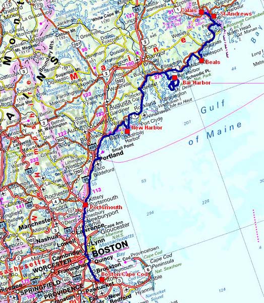 Le projet de visite de la Côte Est des USA est dans le sens nord-sud avec des incursions dans les états limitrophes à l’ouest. Sa durée est limitée au visa de trois mois de novembre à fin janvier 2012. Entrant à Calais, Maine, USA, venant de St Stephen, New Brunswick, Canada, j’allais à Boston cabotant sur la côte. Je n’irai pas dans Vermont où mon ex-compagne a des amis qui séjournèrent chez nous à Neuilly, France ; mais c’était dans une autre vie. Au final le camion sera stocké dans un RV-storage dans le sud des USA fin janvier. En effet je serai en France pour le 10e anniversaire du décès de ma mère. Avec mon frère et ma belle-sœur nous nous recueillerons le 04 février 2012 sur la tombe de nos parents au cimetière des Loges-Margueron, Aube, France. Puis je séjournerai à Draguignan chez mon frère et ma belle-sœur pour faire un check-up médical. Je commençais le périple par la Nouvelle Angleterre composée de six états: Connecticut (CT), Maine (ME), Massachusetts (MA), New Hampshire (NH), Rhode Island (RI), Vermont (VT). La région était habitée par les indiens Algonquiens lorsque le Capitaine B. Gosnold l'aborda en 1602 mais ce n'est qu'en 1614 que le capitaine John Smith la cartographia pour le Roi James 1er. La colonisation commença avec l'arrivée des Pèlerins à Plymouth (MA) en 1620. |