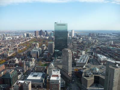 Le lundi matin je repartis en expédition à Boston avec l’objectif de visiter le Boston Museum of Fine Arts, MFA. En route je flânais le nez au vent jusqu’au Prudential Center Skywalk pour avoir une vue panoramique de la ville d’en haut. En début de matinée le temps était encore clair. |
