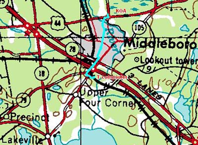 Le soir dans le train de retour j'appris qu'il n'y avait pas de commuter pendant le week-end. Le samedi, par une belle journée ensoleillée et ventée, je décidais de faire la route du KOA au T-Commuter pour relever la trace GPS. L’hôtesse du KOA m’avait donné comme distance 3 miles aller, le GPS donne 9,39km aller et retour, le compte est bon. |