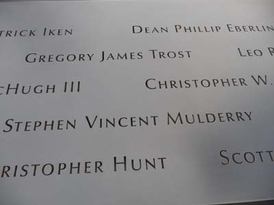 Je passais toute la matinée au Ground Zero qui se compose de trois sites. Le 9/11 Memorial est un espace arboré, encore en construction, incluant deux grands bassins à l’emplacement des fondations des Twin Towers avec des chutes d’eau tombant de leurs parois. Les noms des quelques 3.000 victimes de l’attaque terroriste sont inscrits dans le bronze du bord des bassins. L’avant première du 9/11 Memorial Museum expose des artefacts associés aux évènements. Le Tribute WTC Visitor Center raconte les évènements. Ce fut un grand moment de compassion. |